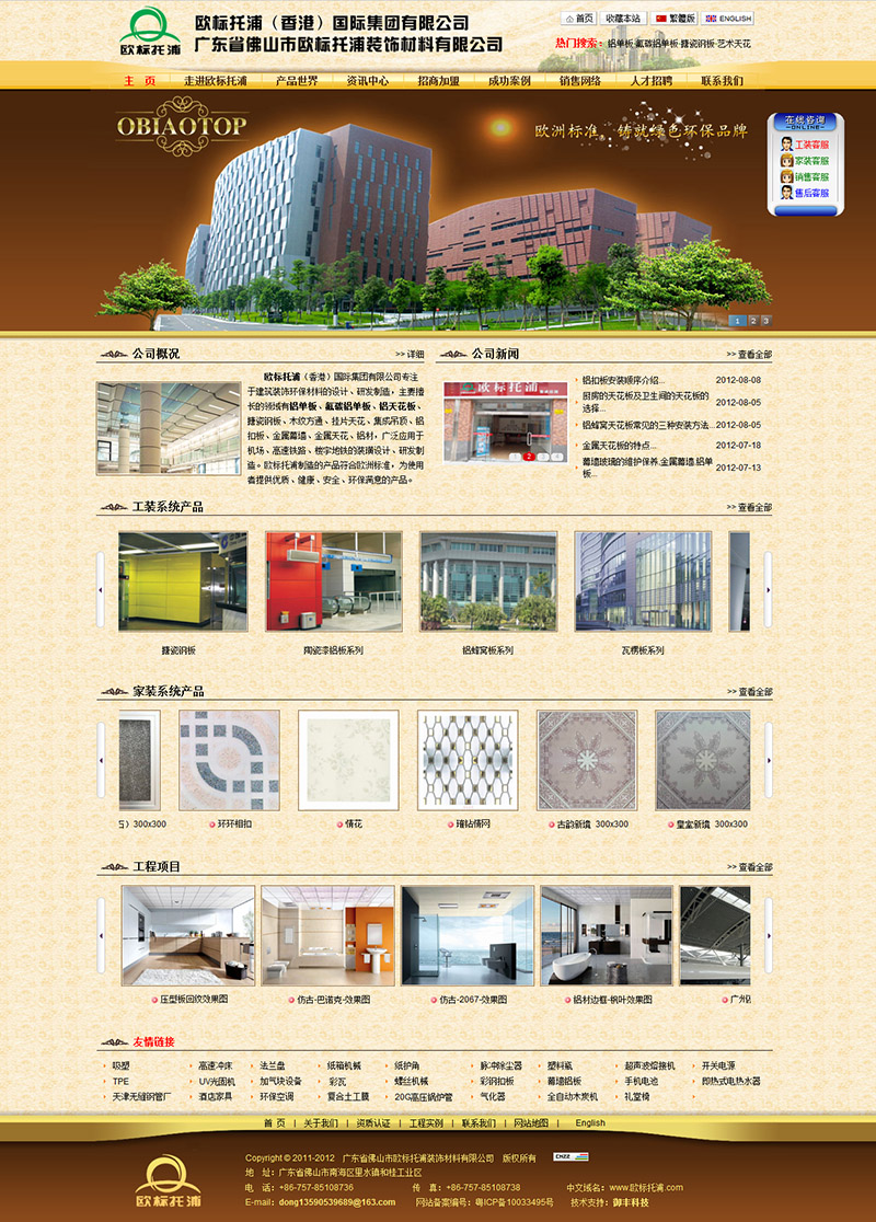 | 歐標托浦(香港)國際集團有限公司專注于建筑裝飾環保材料的設計、研發制造,主要擅長的領域有鋁單板、氟碳鋁單板、鋁天花板、搪... |